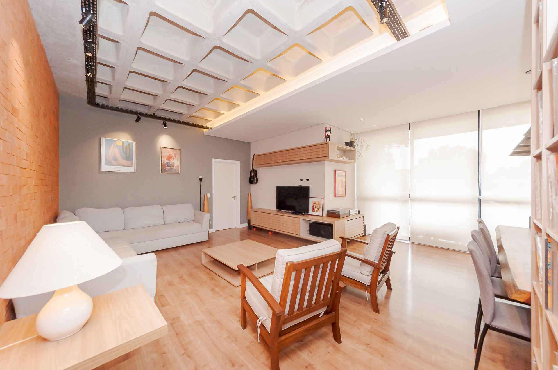 Ele é amplo, projetado pelo arquiteto Alexandre Johnson Neves, conta com uma decoração e acabamento moderno. Em conceito aberto com pé direto alto a área social é excelente para aconchego da família e para receber amigos. Amplo home office, ideal para quem trabalha em casa e precisa de privacidade. Sacada com churrasqueira à carvão. Preparação para instalação de ar condicionado e o conforto das persianas automáticas. As vagas de garagem tem capacidade para até 4 carros de porte médio.